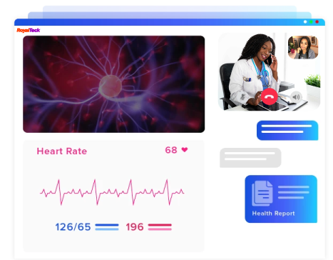 Enrich patient’s communication with professional medical experts to share medical data or talk in real-time for instant health-related care. RoyalTeck delivers real-time chat solution to lift the level of patient care with secure and multi-facet chat functionalities/features (Message, Voice & Video) to disregard in-person visiting.